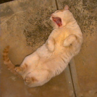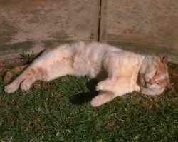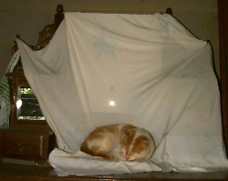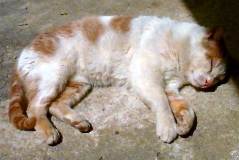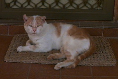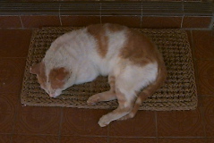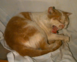 When he's not miaowing or eating, he's probably sleeping, which is most of the time. Anywhere will do, and he has a different spot depending on the time of day and the weather.