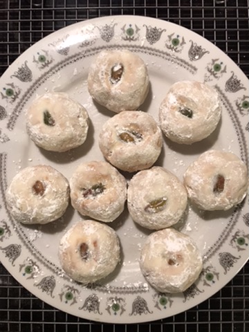 - Use a tablespoon to scoop out evenly sized portions of the dough. Roll each into a smooth ball then press a pistachio firmly into the centre. Divide between the baking trays, leaving a few centimetres apart to allow for spreading.