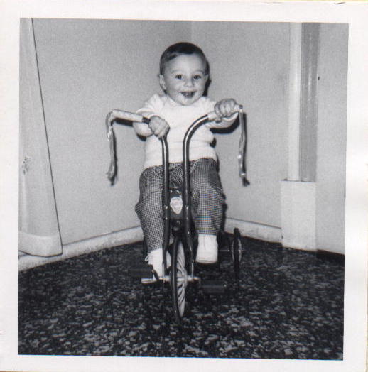 Here's a photo of my first 'cycle, in this case a tricycle. I've graduated to two wheels since then.